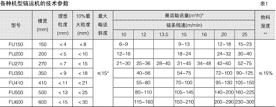 FU型鏈式輸送機,系列齊全,分別有FU150、FU200、FU270、FU350、FU410、FU500及 FU600等各種型號,輸送能力也由6m3/h到500m3/h不等,可以滿足不同客戶的特殊輸送要求。