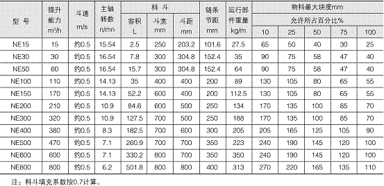 NE型斗式提升機鏈技術(shù)參數(shù):