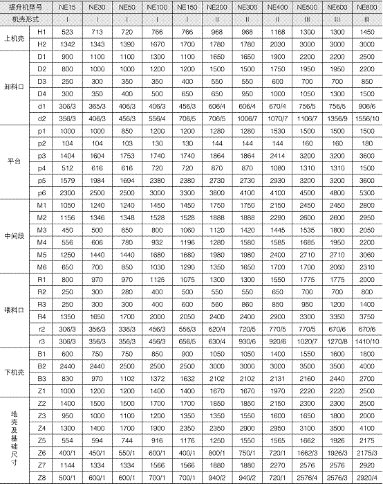 NE系列板鏈式提升機是本公司在國外同類產(chǎn)品的基礎(chǔ)上開發(fā)研制的產(chǎn)品,用來提升各種散狀物料。是目前國內(nèi)較為先進的一種垂直提升設(shè)備。規(guī)格有NE15、NE30、NE50、NE100、NE150、NE200、NE300、NE400、NE500、NE600及NE800。它由運行部件、驅(qū)動部件、上部裝置、中部機殼以及下部裝置組成。運動部件由料斗和套筒滾子鏈組成,NE15、NE30采用單排鏈,NE50-NE800采用雙排鏈。驅(qū)動裝置采用多種組合驅(qū)動,驅(qū)動平臺上裝有檢修架和欄桿。驅(qū)動裝置分左右兩種。上部裝有軌道、逆止器。卸料口裝有防回料橡膠板。中間節(jié)裝有軌道以防止鏈條在工作時擺動。下部裝有自動張緊裝置。